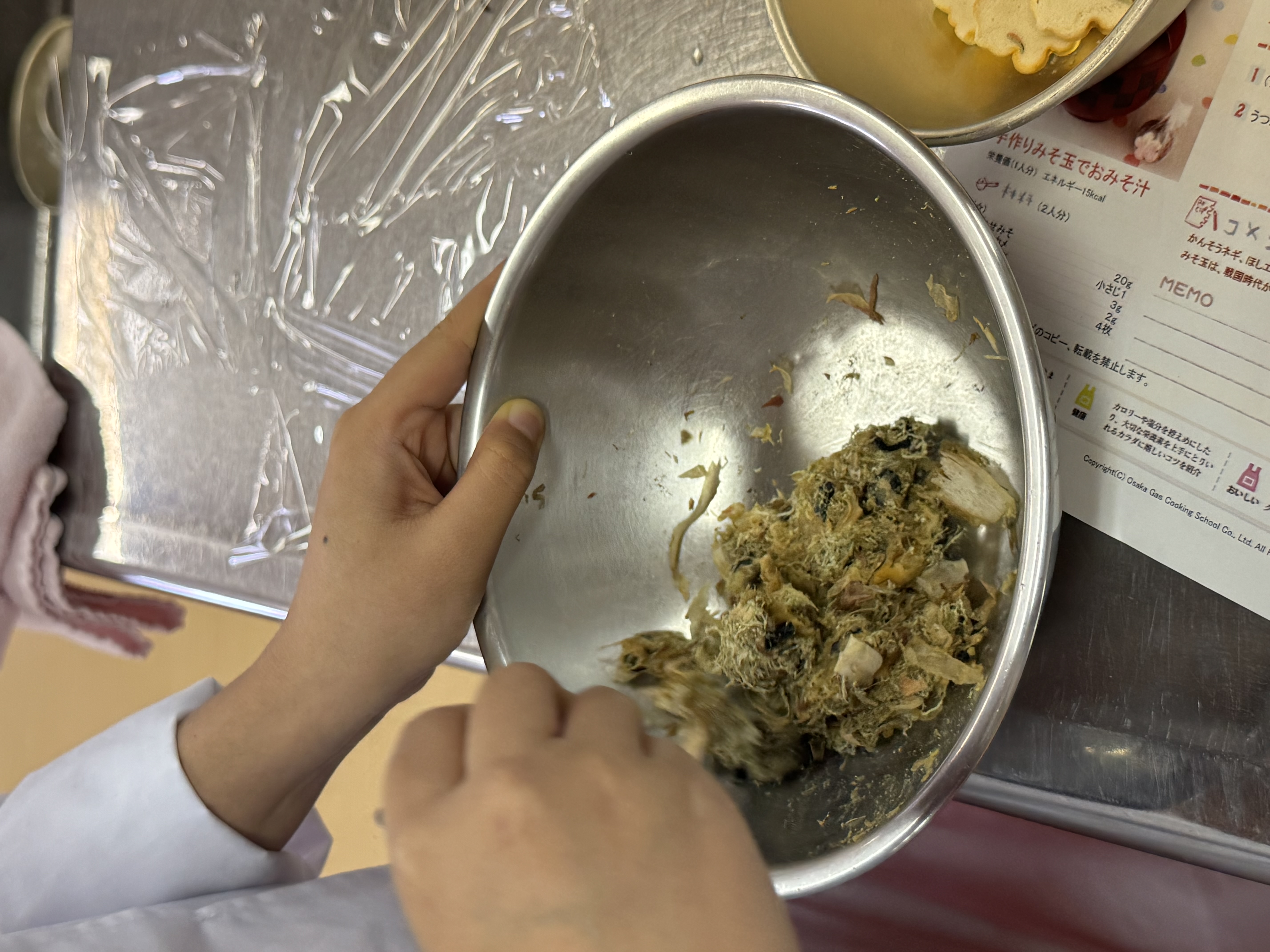 お味噌汁は、味噌・わかめ(乾)・とろろ昆布・鰹節をすべて混ぜ
