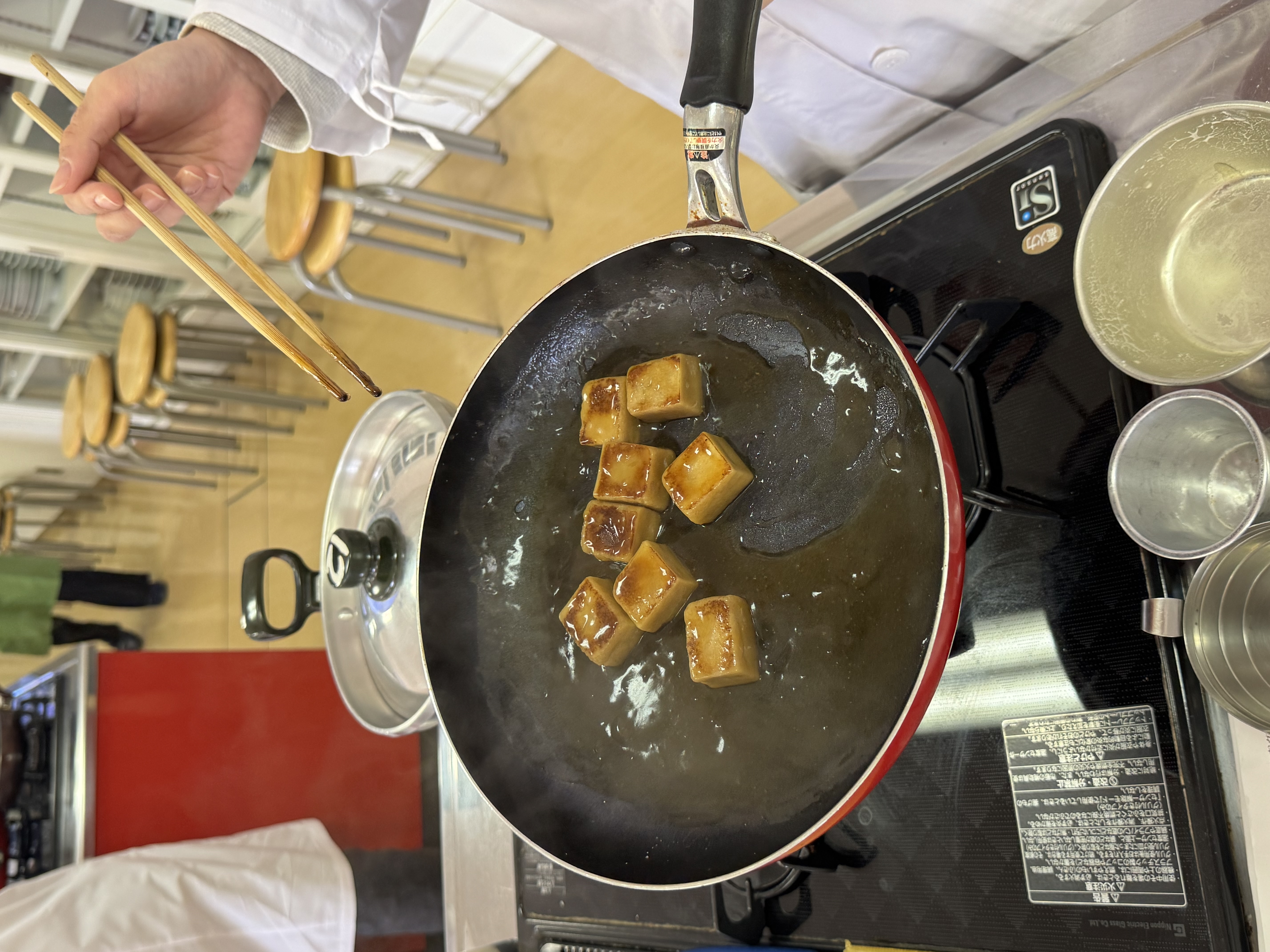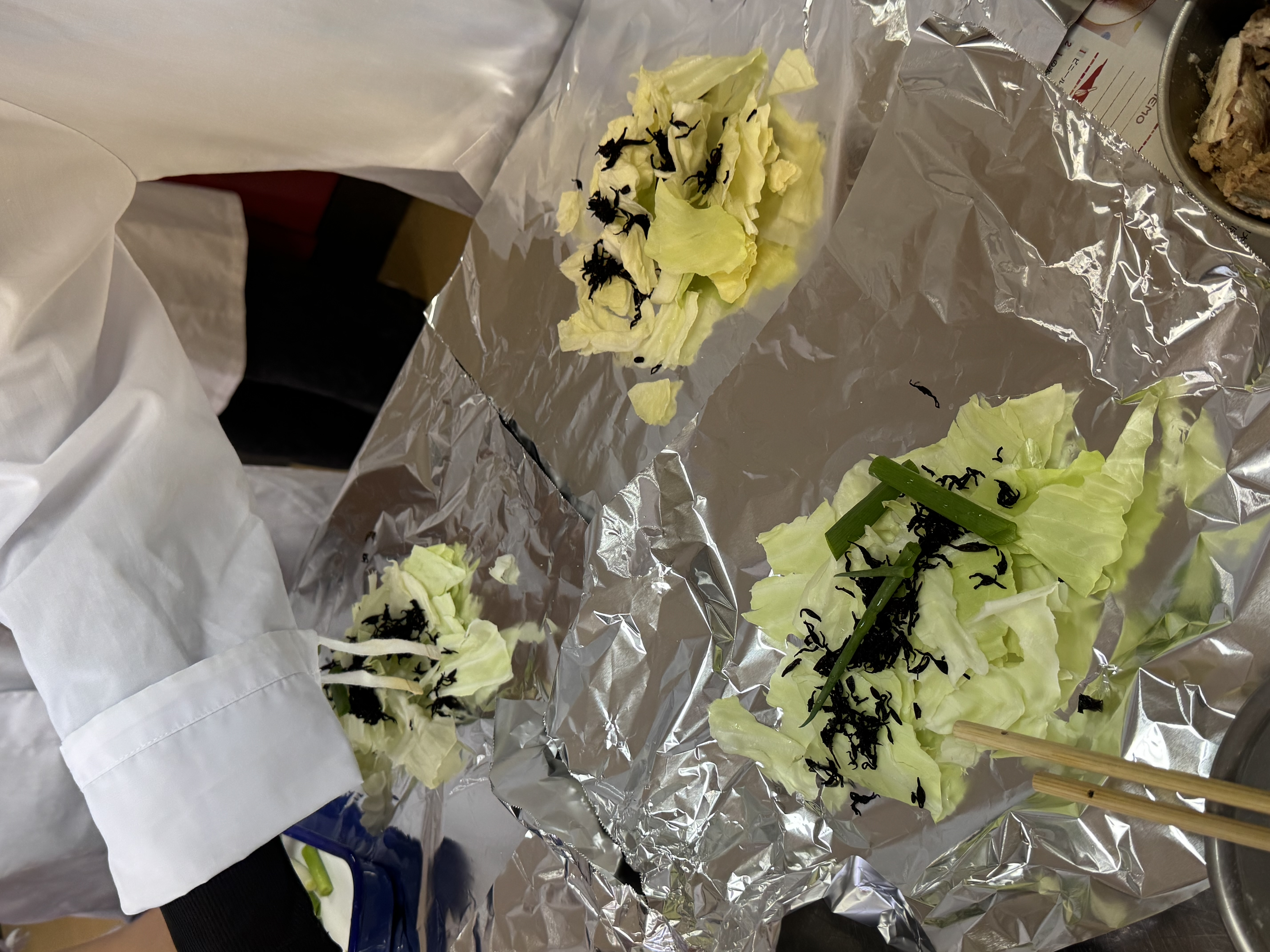 しょうゆをかけて包み、フライパンで10分弱火にし蓋をします。