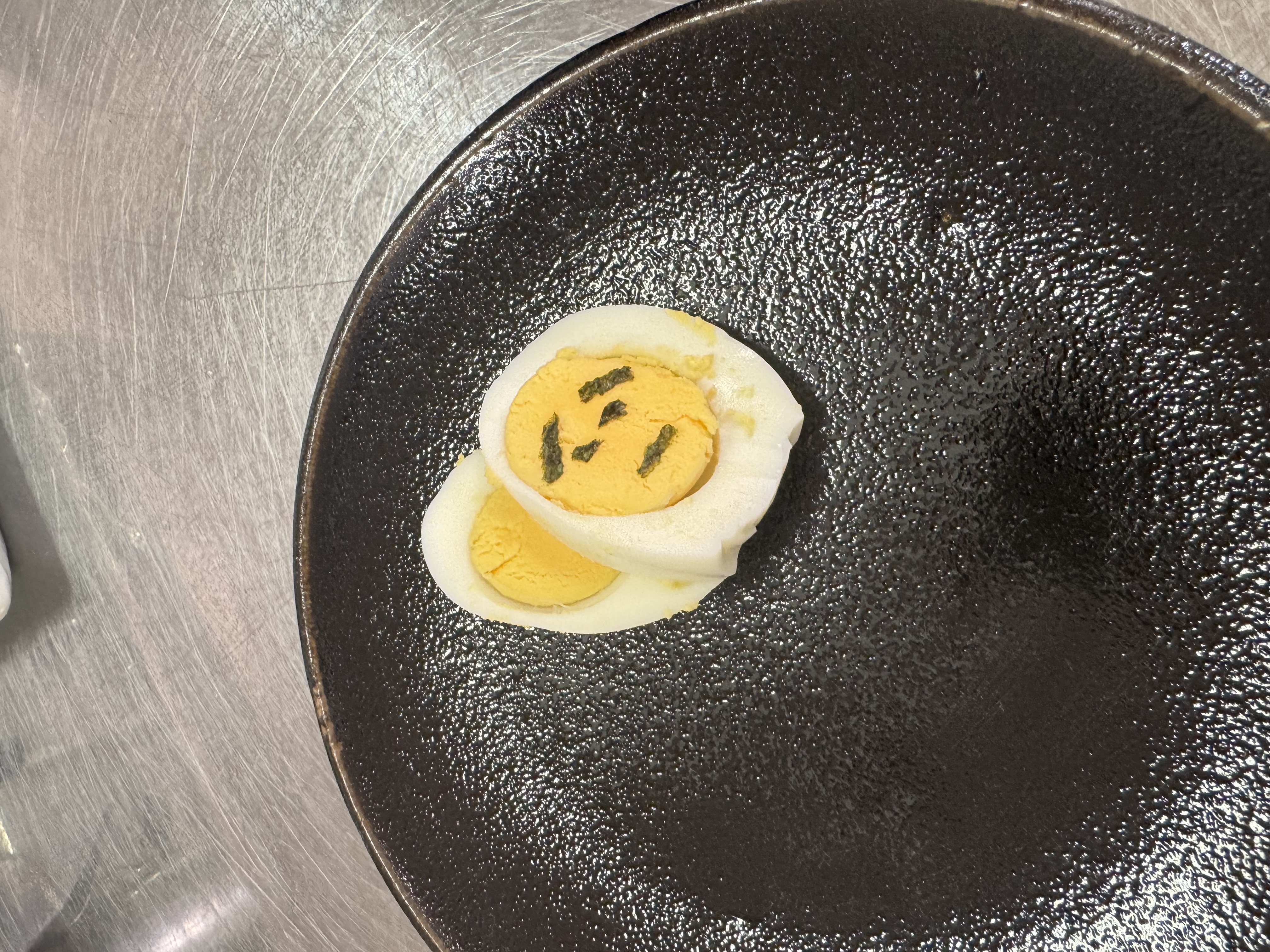 具材は、トウモロコシ(缶)干ししいたけ、鮭フレーク、最後に茹で卵と海苔をトッピング。