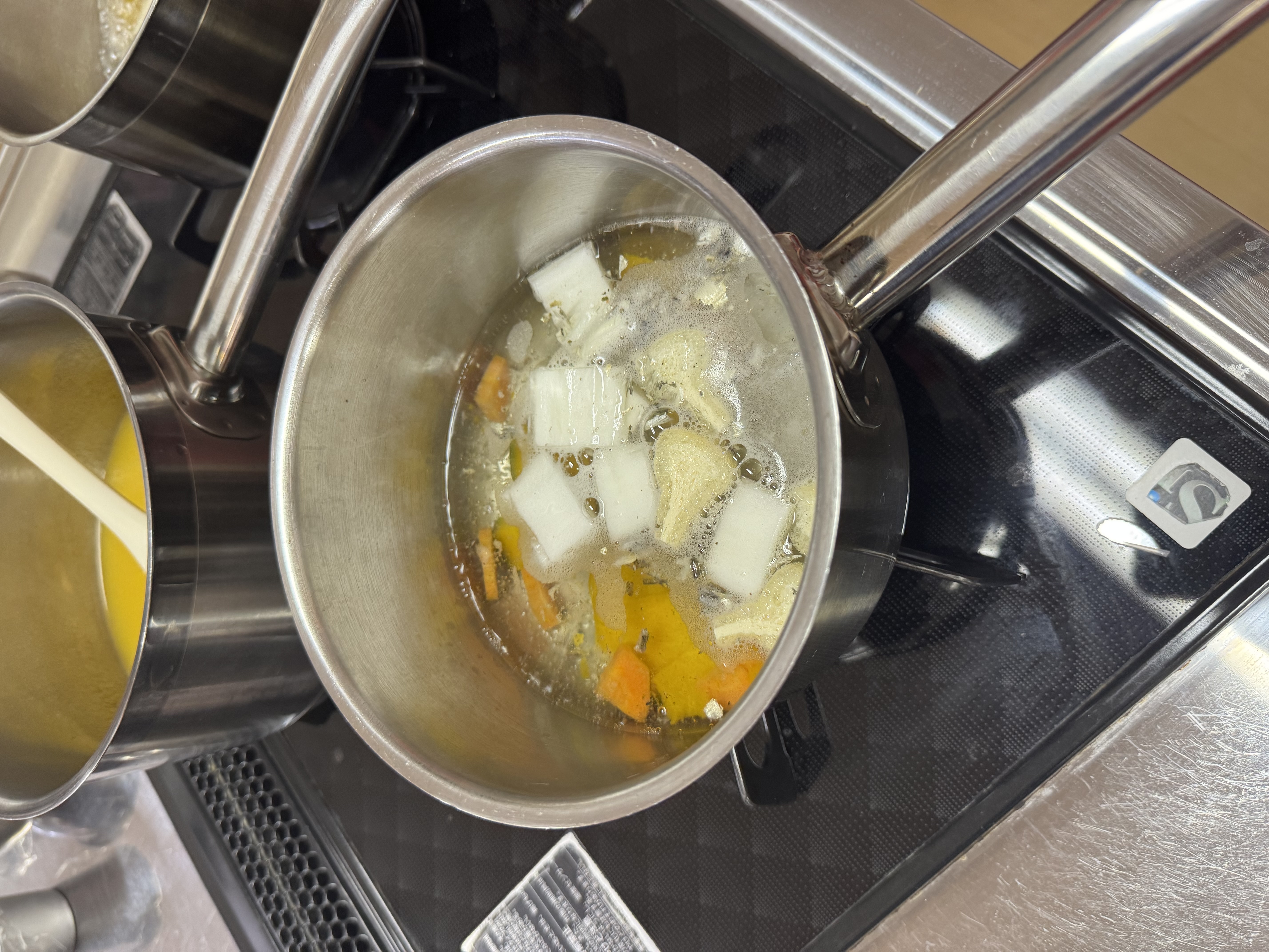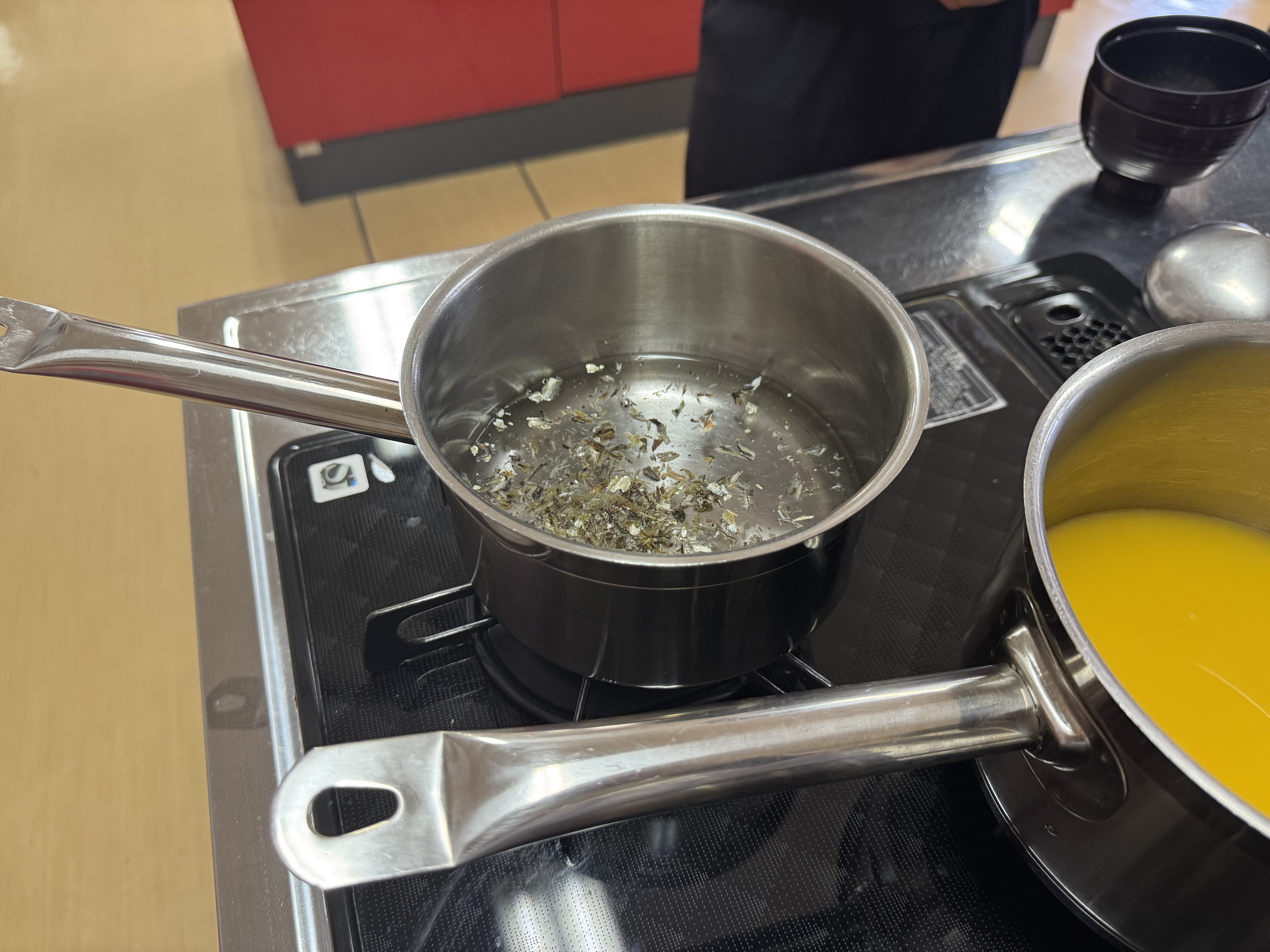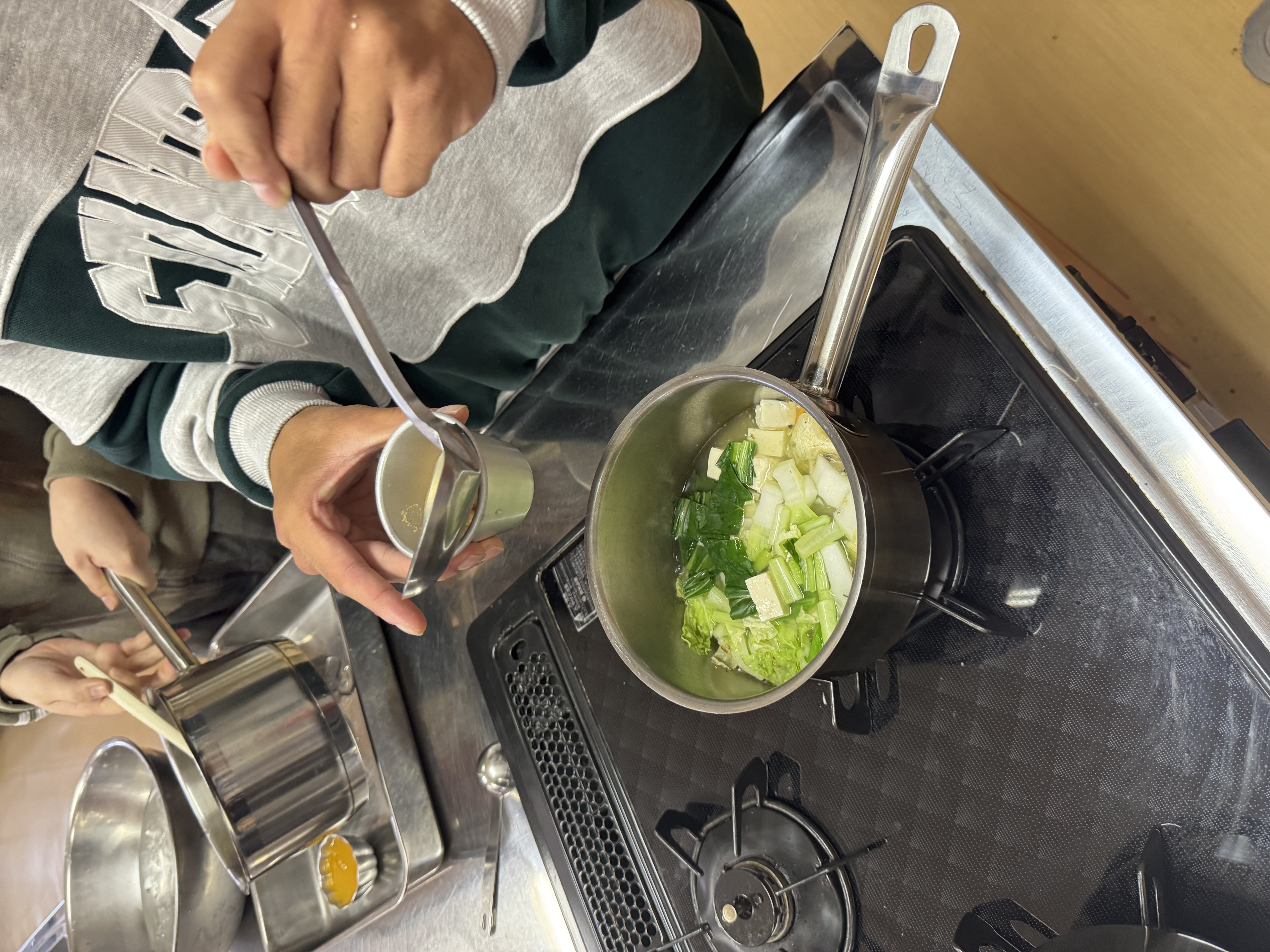 実習では、「具だくさん味噌汁」「オレンジゼリー」を作りました!