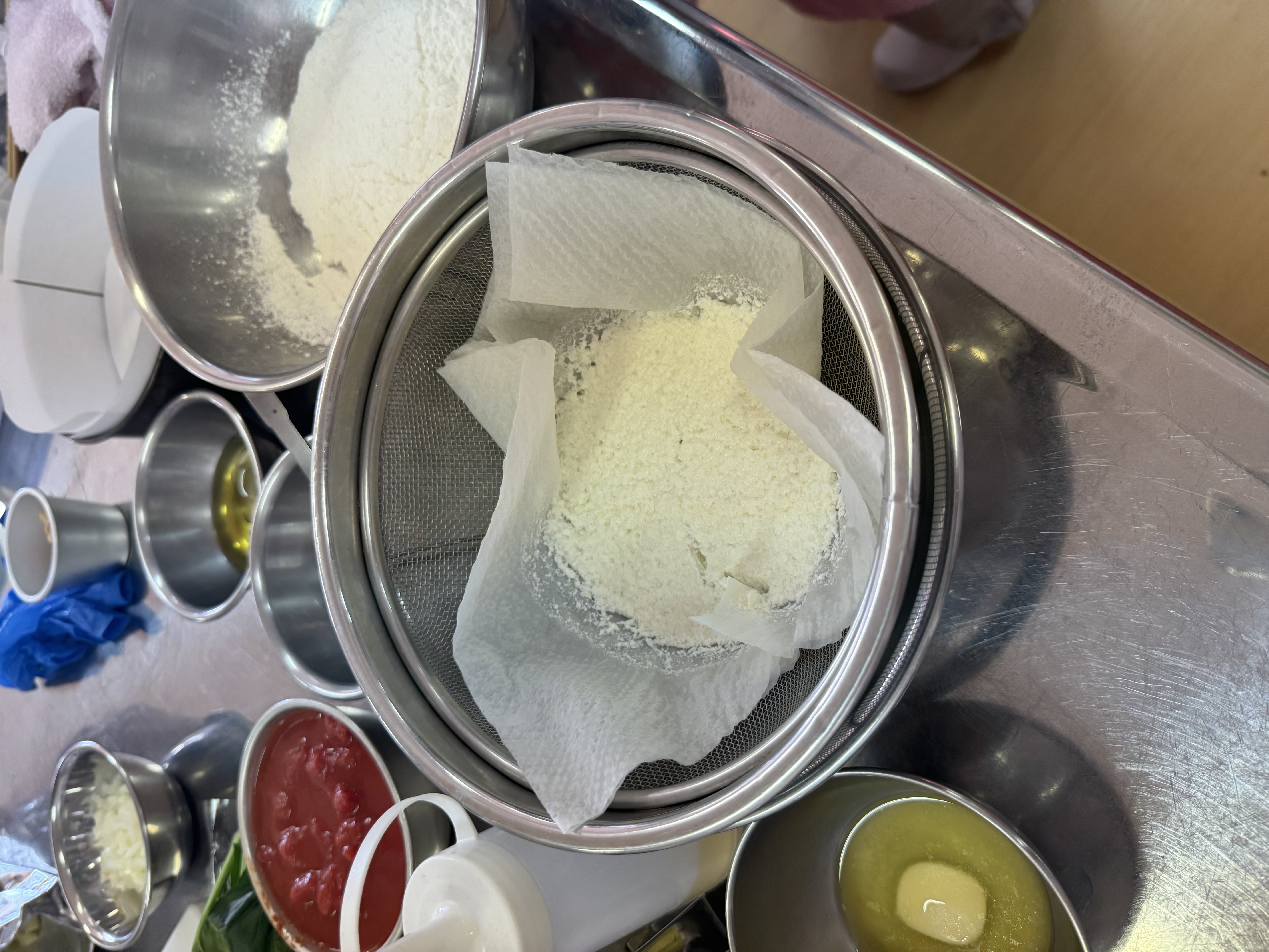 牛乳と酢を混ぜると、牛乳のたんぱく質(カゼイン)が酸によって固まりカッテージチーズが出来上がります('◇')ゞ